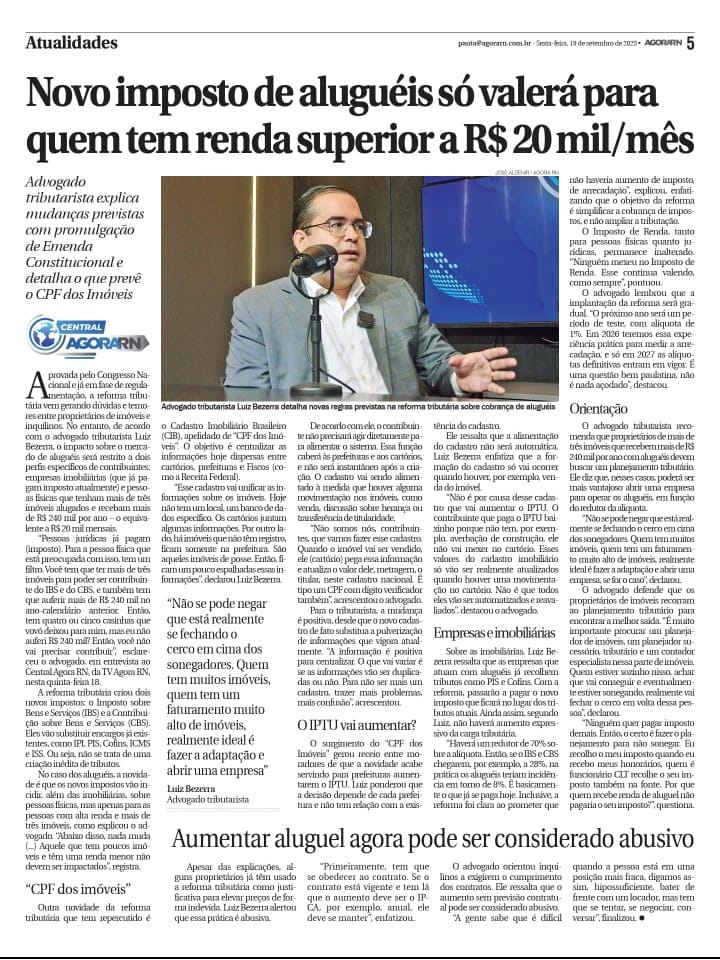 Assista à entrevista com o Dr. Luiz Bezerra e descubra como as novas regras sobre aluguéis e o “CPF dos Imóveis” podem afetar seu patrimônio — e como uma holding familiar pode ser a solução para proteger seus bens e reduzir tributos.
